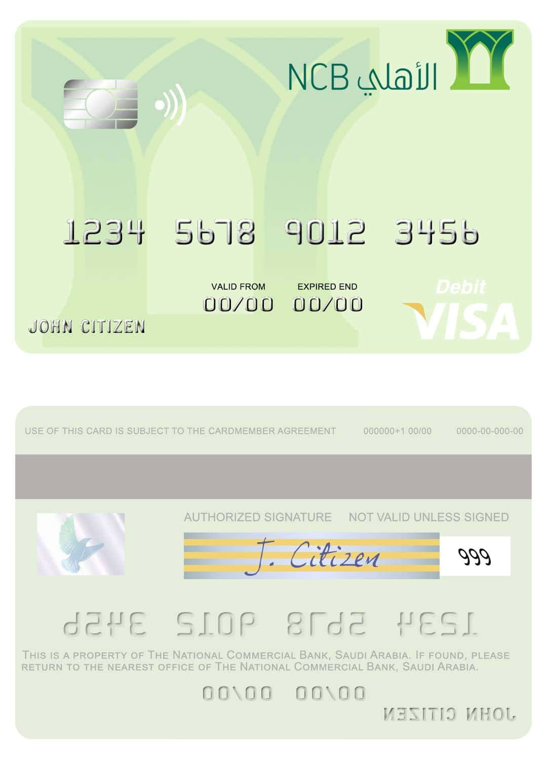 Our Saudi Arabia The National Commercial Bank visa debit card PSD templates are user-friendly and come with well-organized layers, making customization a hassle-free process for both designers and non-designers. With our templates, you can create custom visa debit cards that suit your needs and preferences, without the need for advanced design skills or software.