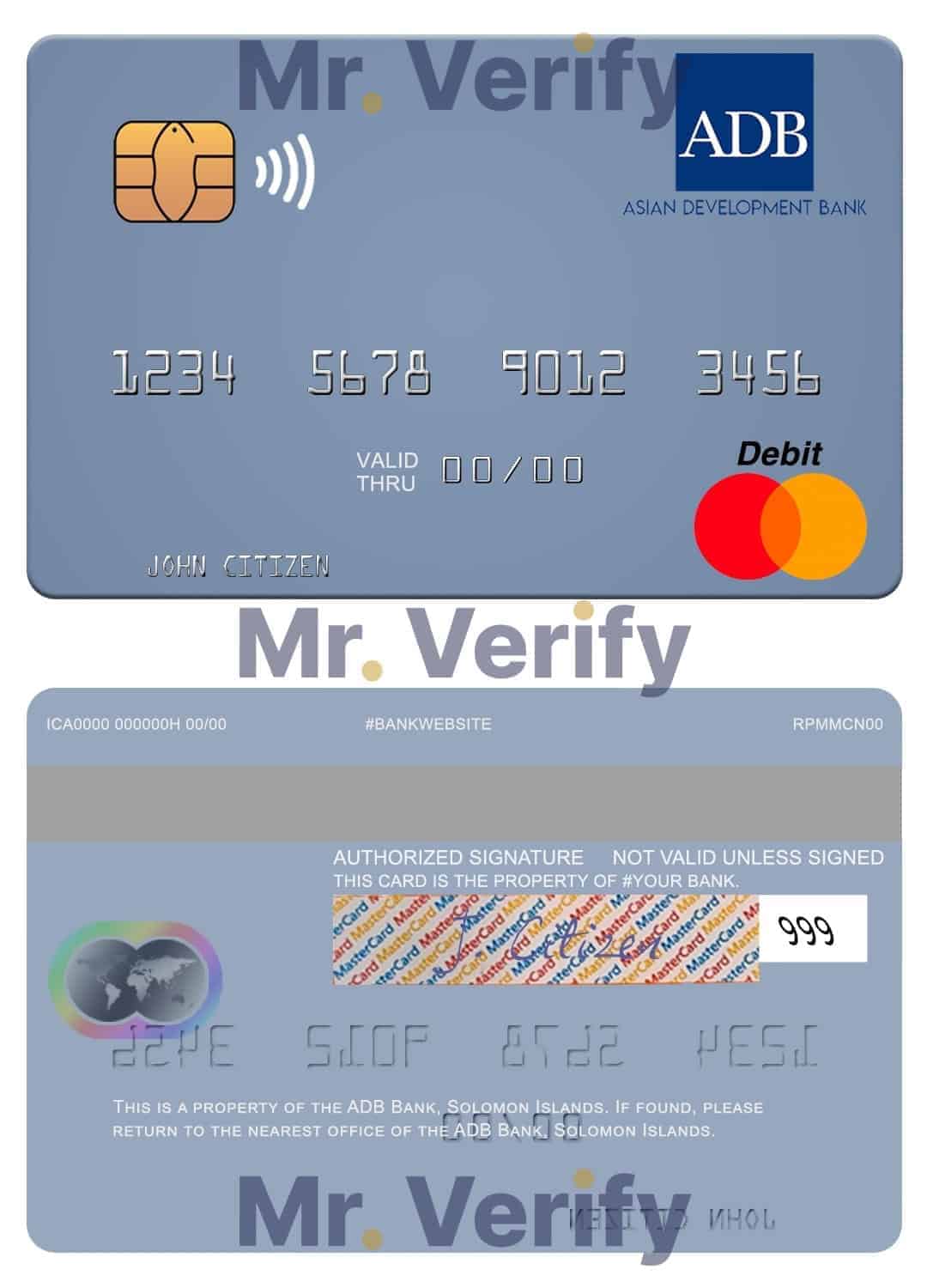 Fillable Solomon Islands ADB Bank mastercard credit card Templates | Layer-Based PSD