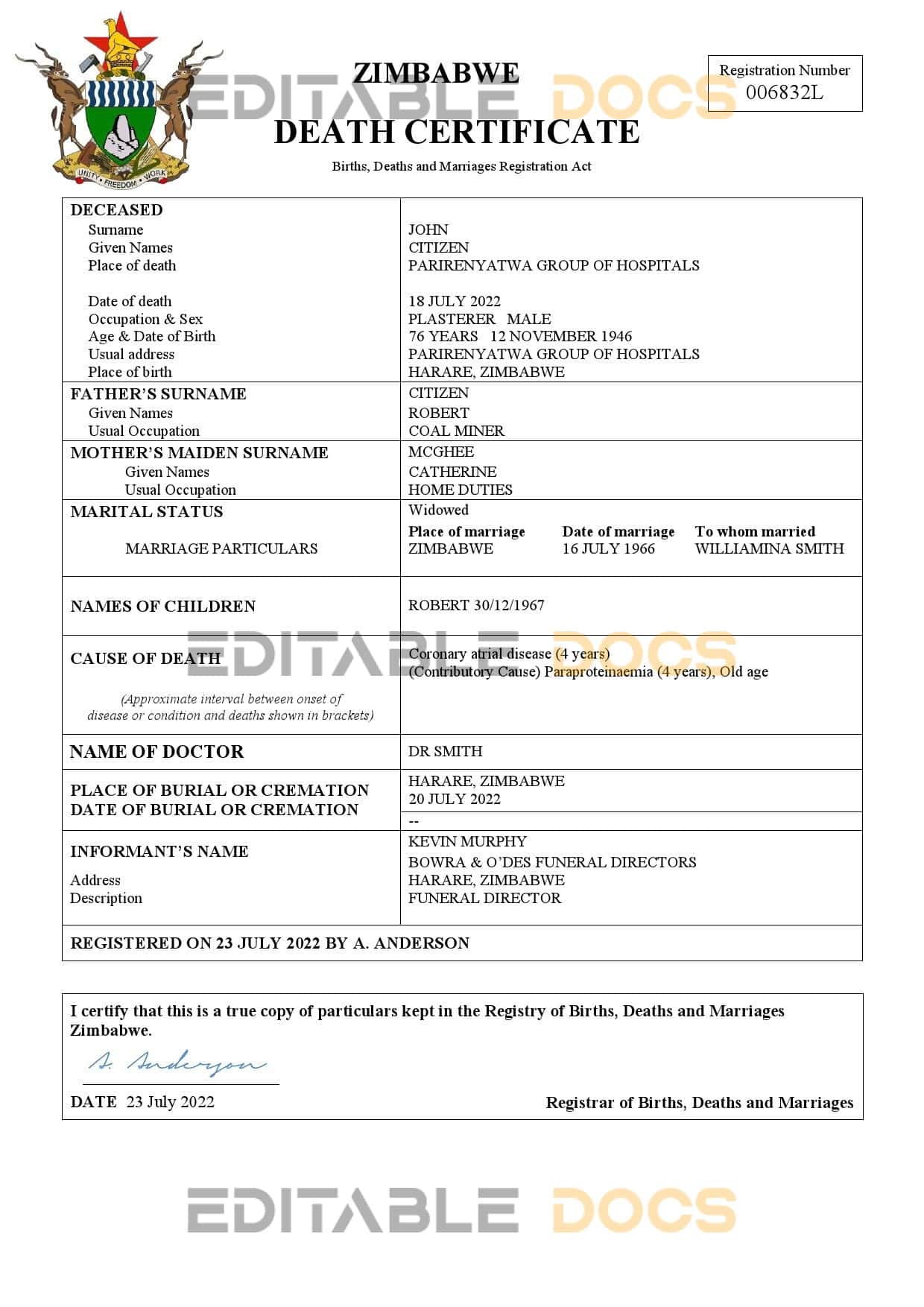Why Choose Zimbabwe Death Certificate Templates?