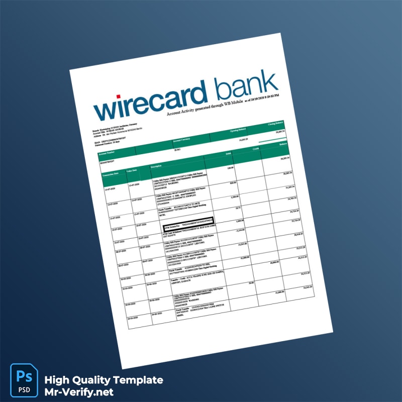 Don’t let missing documents impede your progress. Invest in the Germany Wirecard Bank Editable Bank Statement Template today and experience the ease of document creation that thousands of our satisfied customers enjoy. For more options, explore our Mexico Electricity Utility Bill Template or the USA Con Edison Utility Bill Template. Your professional upgrades await!