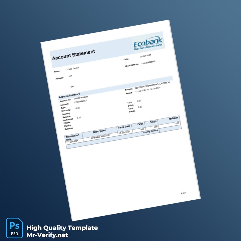 Upgrade your documentation process with our Ghana Ecobank Account Statement Template, available in both Word and PDF formats. This editable template is designed for professionals needing a reliable and customizable bank statement solution.