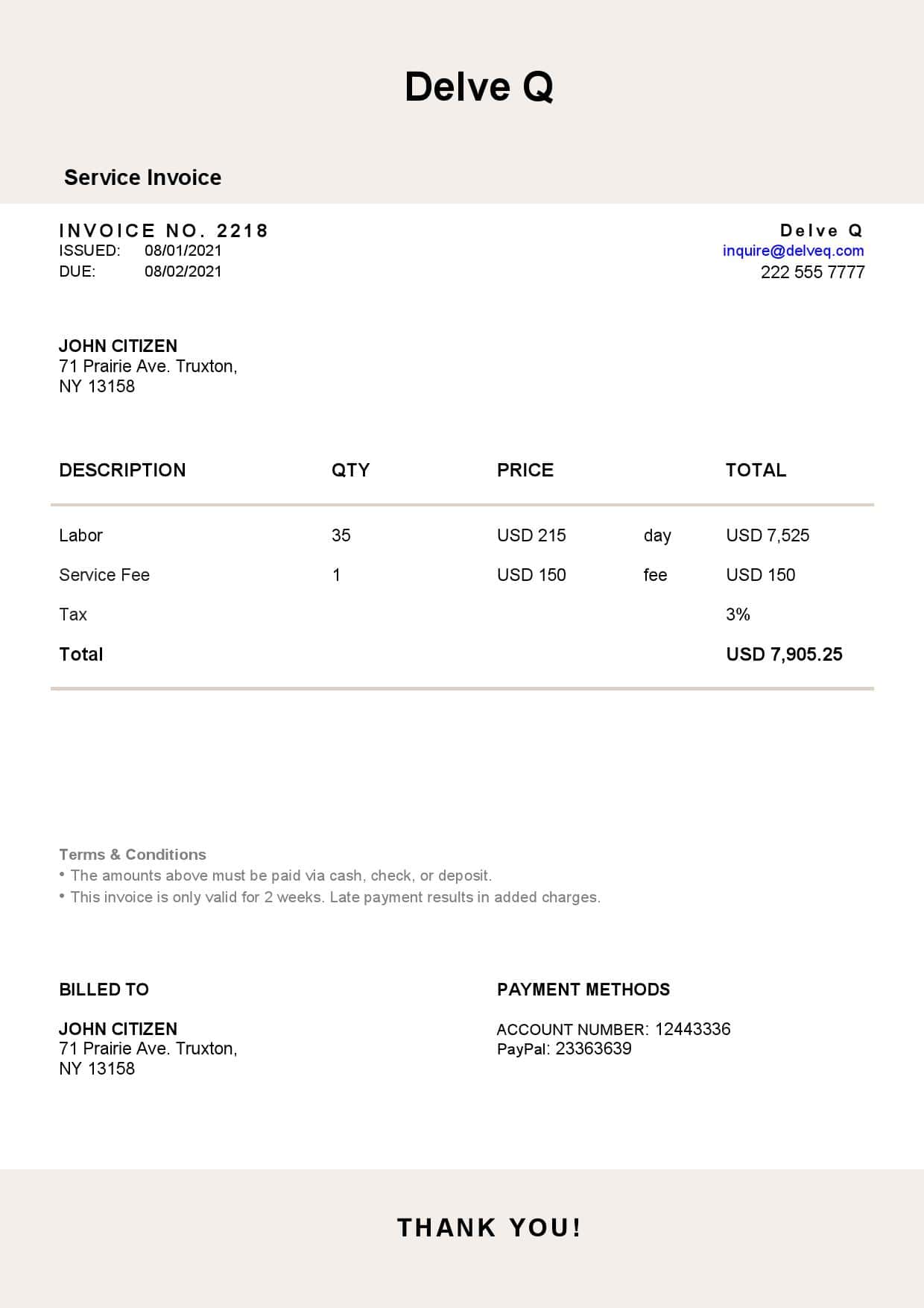 USA Delve Q Invoice Template for Efficient and Professional Business Operations
