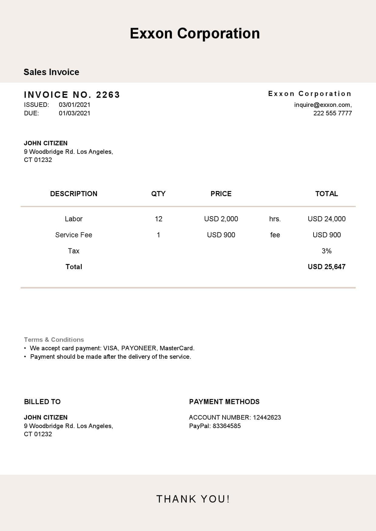 USA Exxon Corporation Invoice Template for Efficient and Professional Business Operations