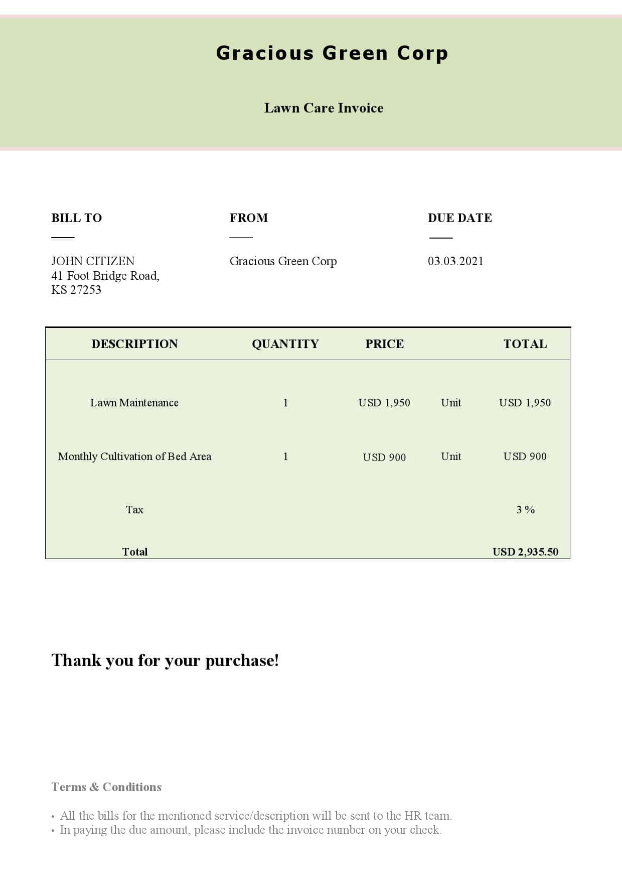 USA Gracious Green Corp Invoice Template for Efficient and Professional Business Operations