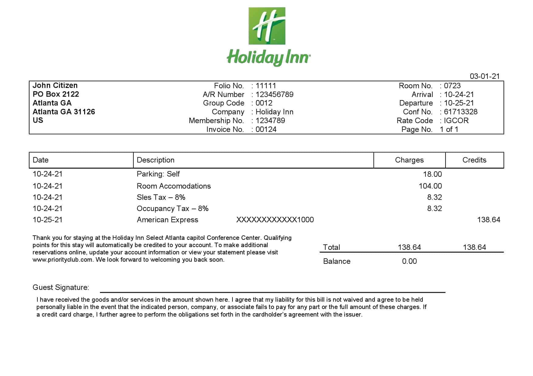 USA Holiday Inn InterContinental Hotels Group Invoice Template for Efficient and Professional Business Operations