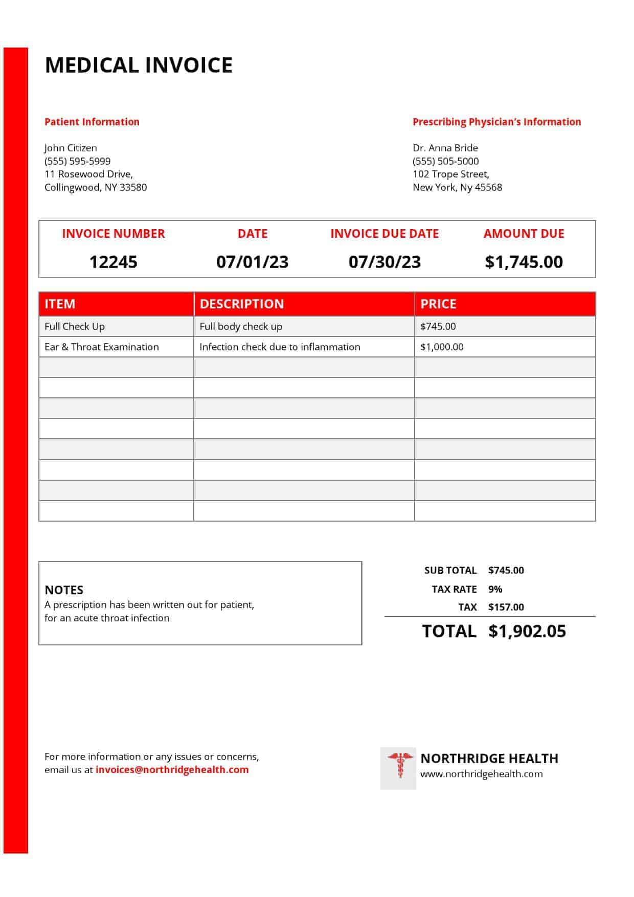 USA New York Northridge Health Center medical Invoice Template for Efficient and Professional Business Operations