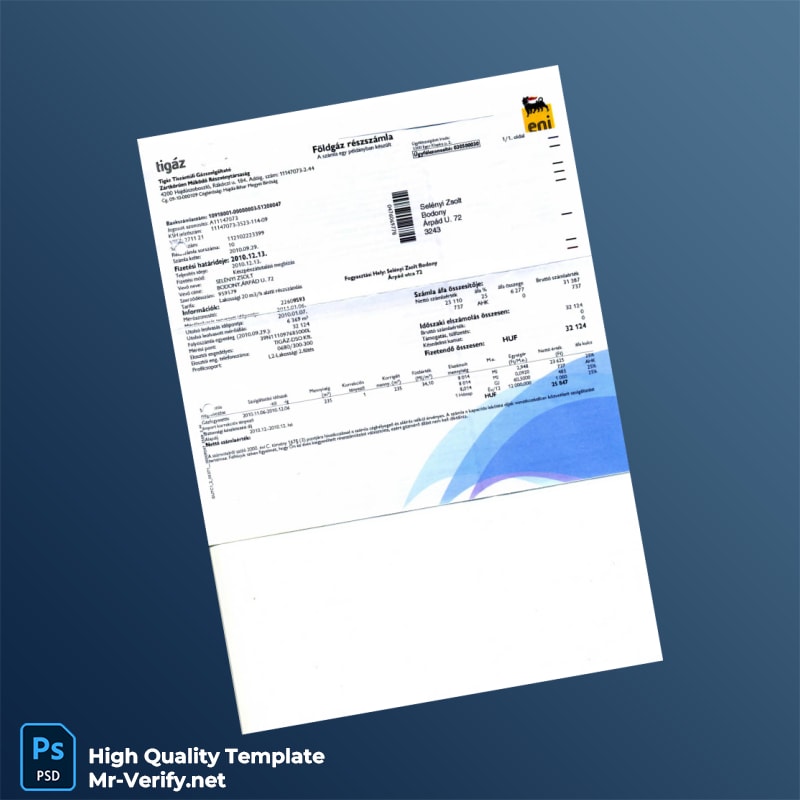 Are you in urgent need of a professional utility bill proof of address? Our Hungary Editable Utility Bill Template is designed to meet your needs efficiently, allowing you to swiftly create a legitimate-looking document in both Word and PDF formats.