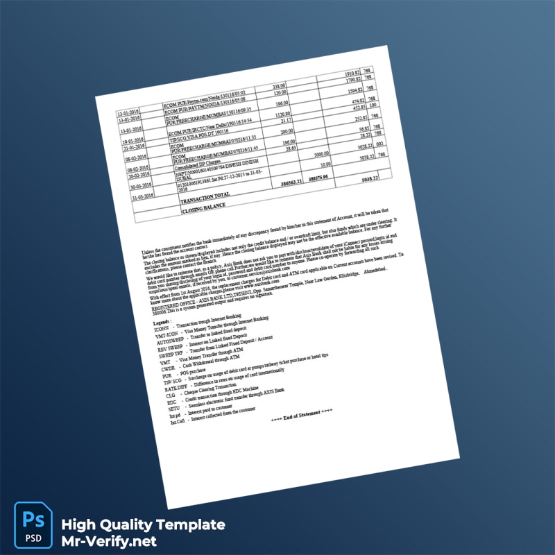 Are you in urgent need of a professional-looking bank statement template? The time-consuming process of waiting for a bank to issue your statement can hinder your personal or business projects. Introducing the India Axis Bank Account Statement Template, available in both Word and PDF formats, designed for swift customization and immediate usage.
