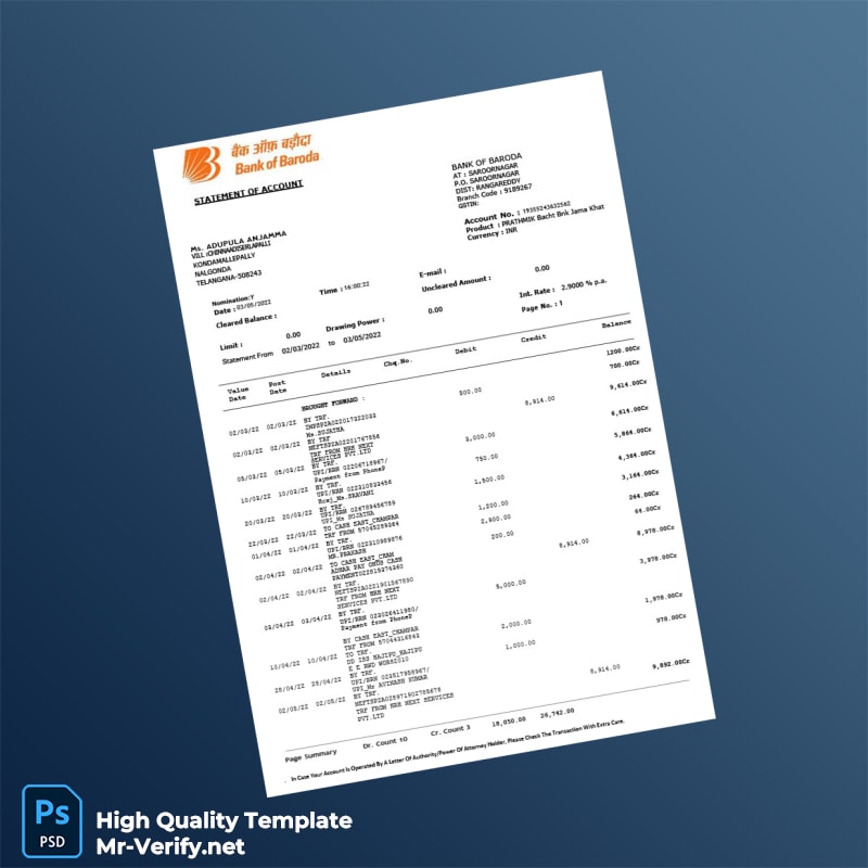 Are you struggling to quickly obtain a professional bank statement for your financial needs? Whether it’s for a loan application, visa processing, or personal record-keeping, our India – Bank Statement Template in Word and PDF formats is your ideal solution. Designed for convenience and efficiency, this template will help you produce authentic and visually appealing statements in no time.
