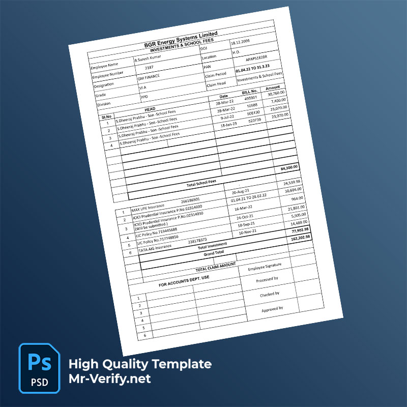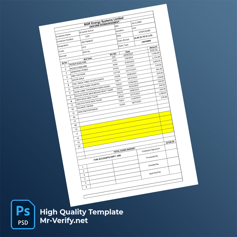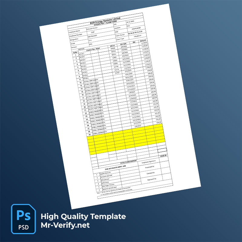India BGR Energy Systems Limited Editable Reimbursement Claim Form Template in Word and PDF formats