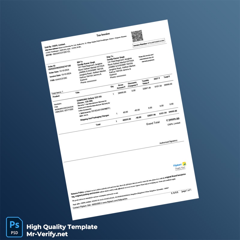 Be the first to review “India CIIGFL Limited Tax Invoice Template in Word and PDF formats 3 page”