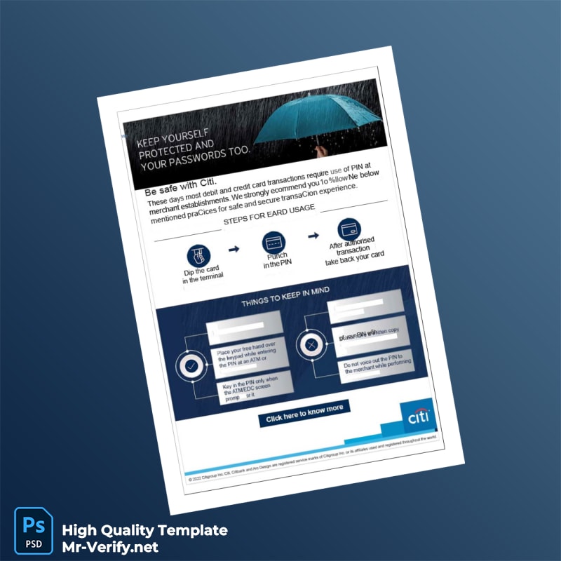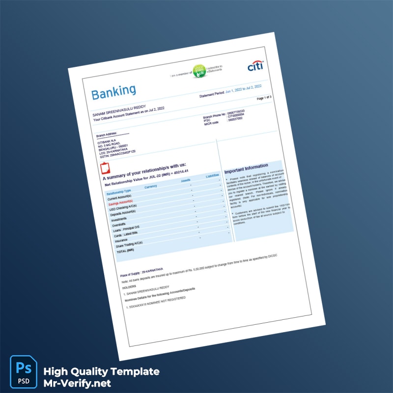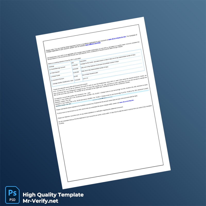 India Citibank Account Statement Template in Word and PDF formats 4 page