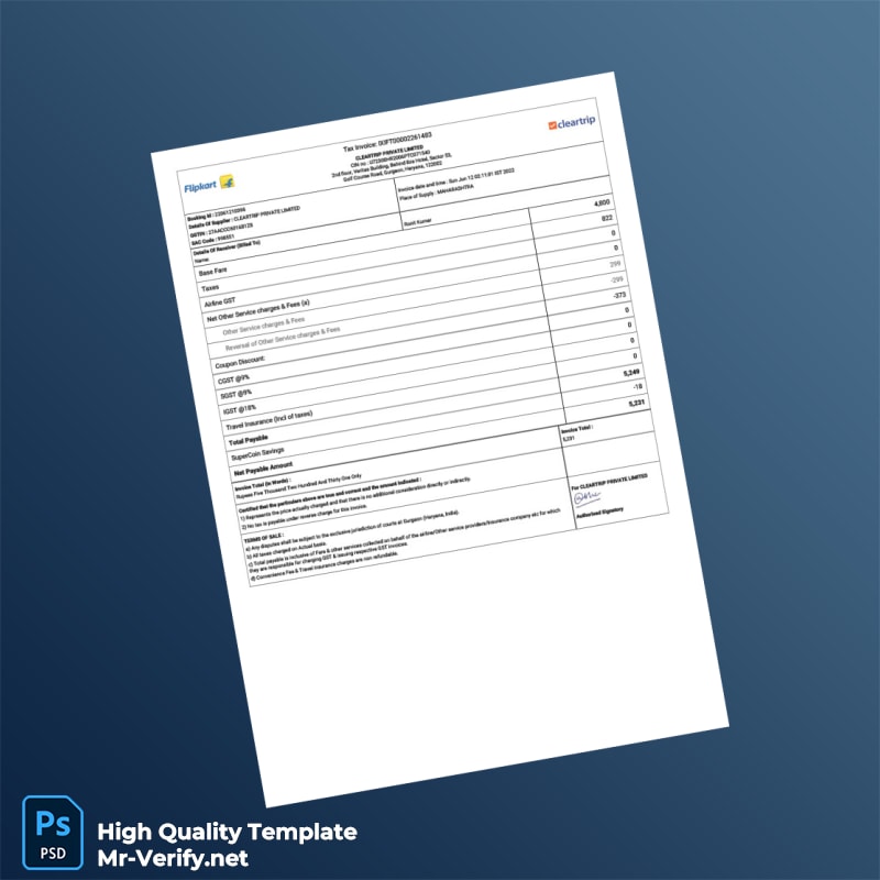 India Cleartrip Private Limited Tax Invoice Template: Your Professional Editable Solution
