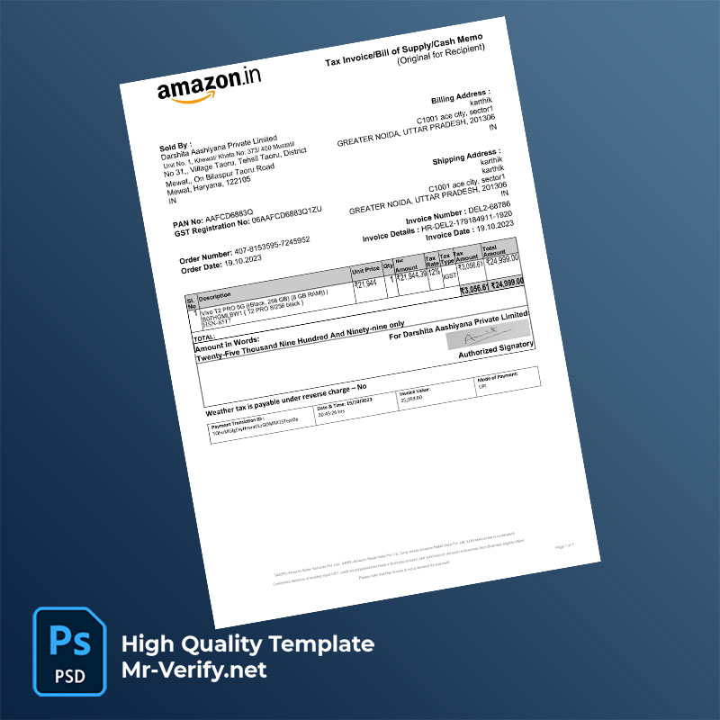 India Darshita Aashiyana Private Limited Editable Tax Invoice Template in Word and PDF formats
