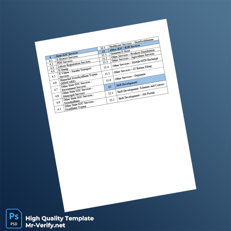 India Editable List of Services Offered Through CSCs Template in Word and PDF formats is your essential tool for quickly creating professional utility bills that meet all necessary documentation requirements. Designed with high adaptability in mind, this template offers unprecedented convenience for professionals across various sectors, enabling you to showcase services offered through Common Services Centers (CSCs) in India.
