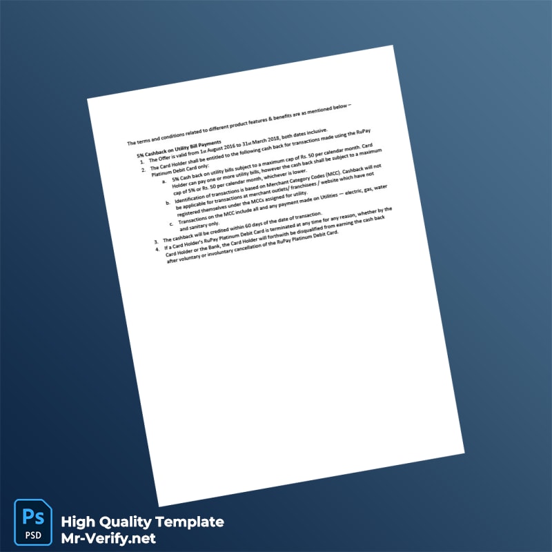 The India Editable RuPay Features Template provides a reliable solution for professionals in need of an authentic-looking utility bill. Crafted for versatility, this template is designed to serve as your proof of address, ensuring you can quickly meet various documentation requirements.