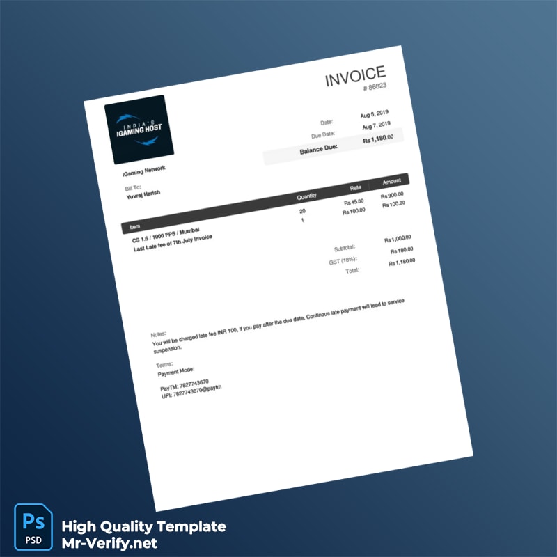 India iGaming Network Invoice Template – Editable Word and PDF Formats