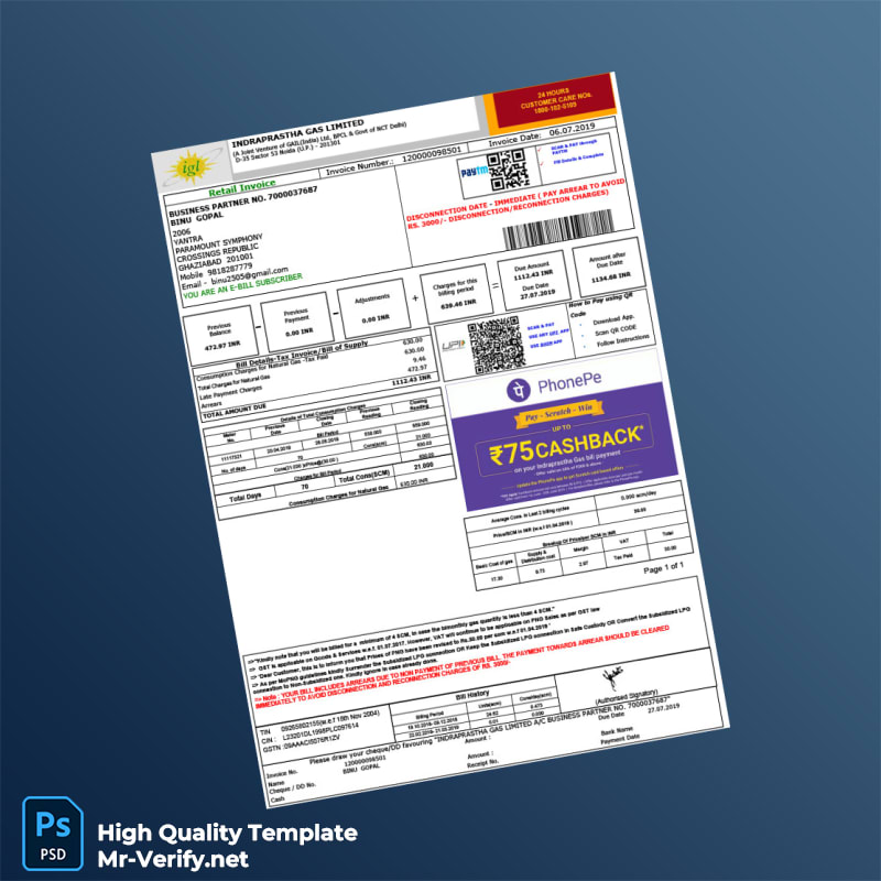 Are you in need of a reliable utility bill proof of address template? Look no further—our India Indraprastha Gas Limited Editable Utility Bill Template in both Word and PDF formats offers a seamless solution for professionals requiring quick document turnaround.