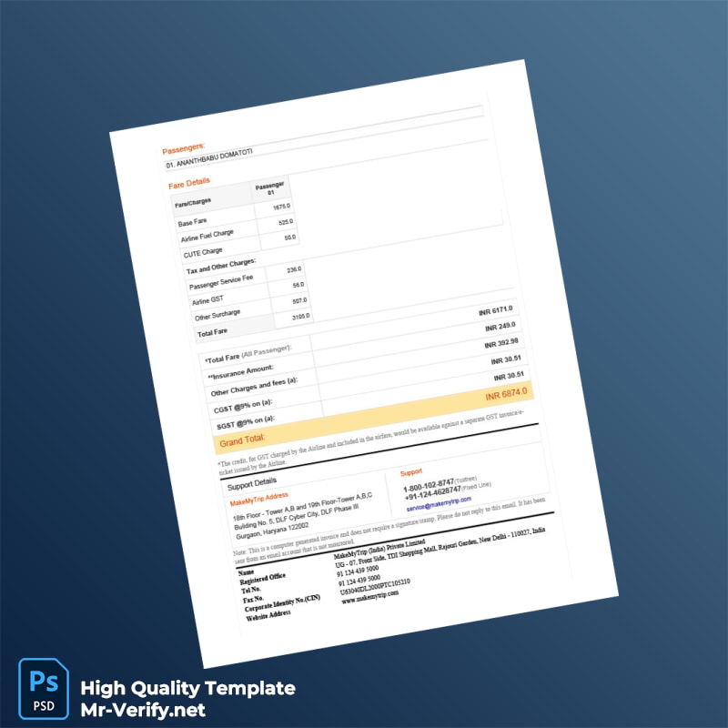 India MakeMyTrip Tax Invoice Template: Professional, Editable, and Ready to Use