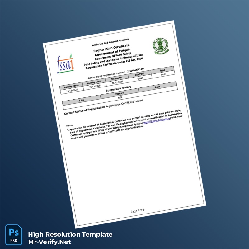 India Registration Certificate Editable Amendment Certificate Word and Pdf Template 5 page