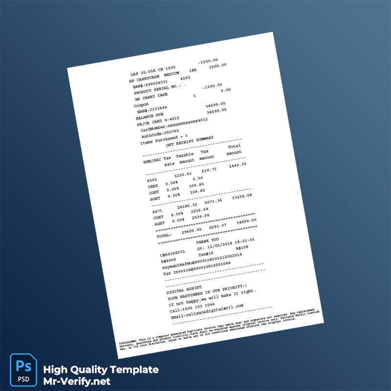 Get Started with Your Editable India Reliance Retail Invoice Today
