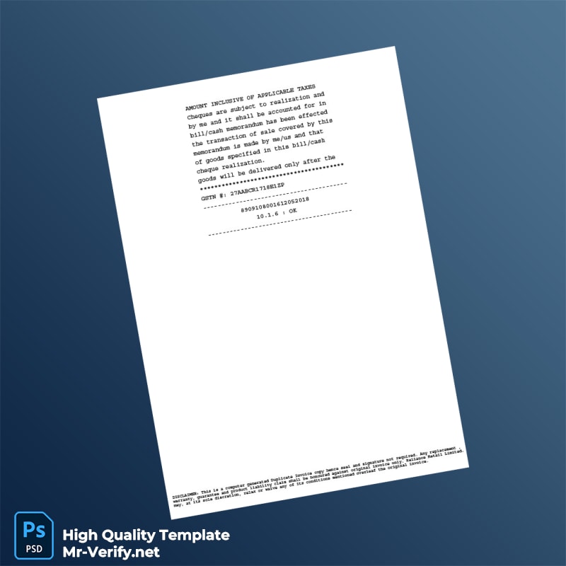 India Reliance Retail Limited Tax Invoice Template – Editable Word & PDF Download