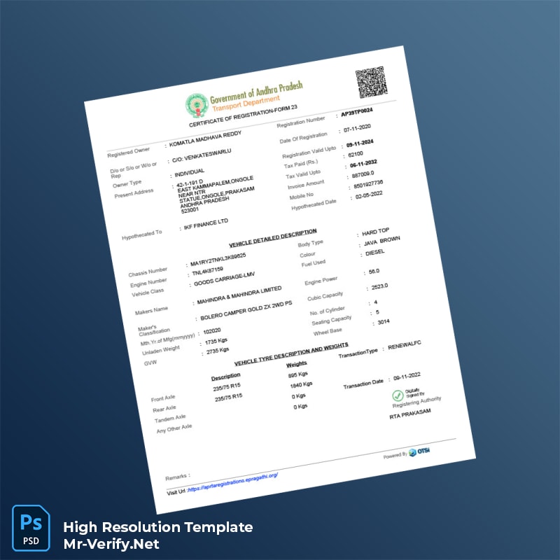 Streamline your official documentation process with the India RTA Registration Certificate Word and PDF Template, designed for professionals who require a convenient, editable registration certificate solution. Whether you need to replace a lost certificate or ensure compliance with official requirements, this template provides a seamless and efficient way to generate a professional document ready for immediate use.