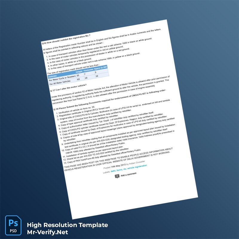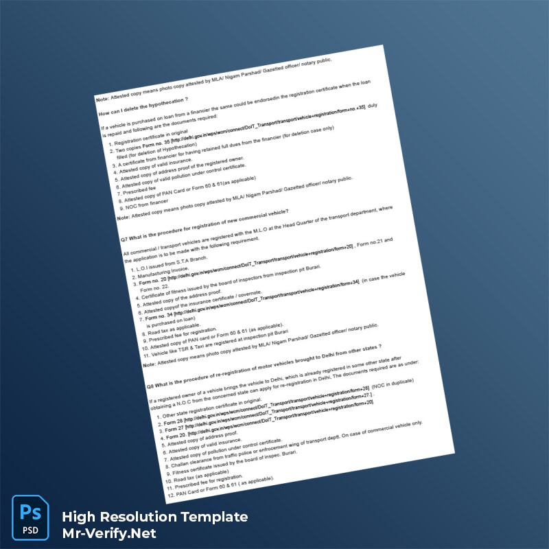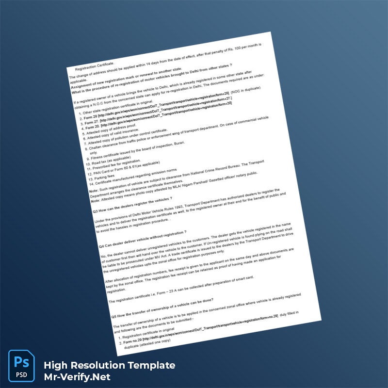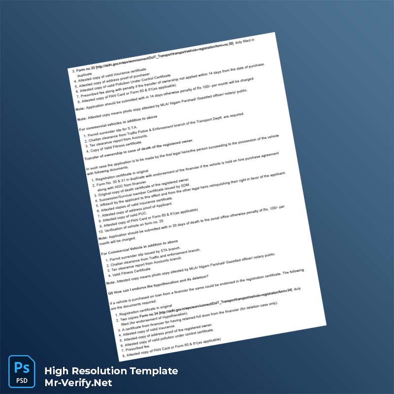 Unlock Seamless Vehicle Registration with the India RTO Vehicle Registration Information Document Word and PDF Template