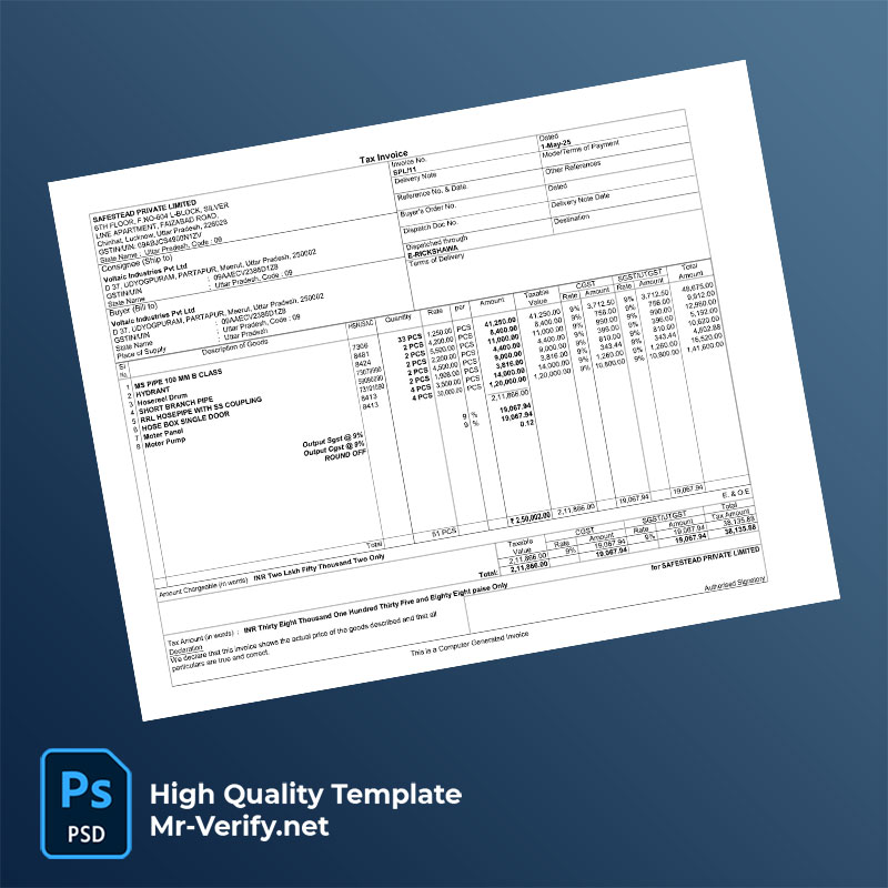 India Safestead Private Limited Editable Construction Bill Template in Word and PDF formats