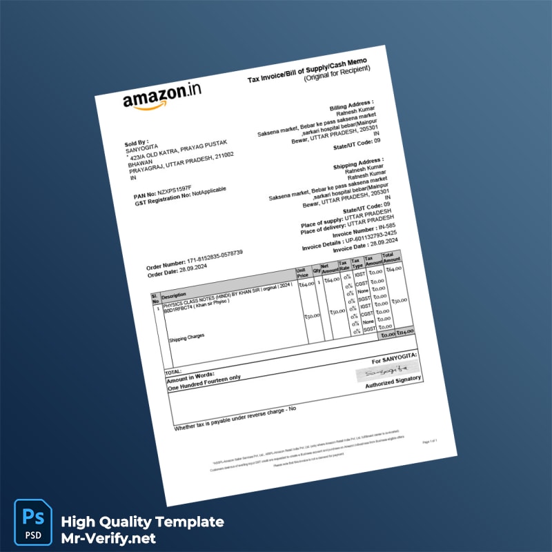 Looking for region-specific alternatives? Check out the High Quality India Cemiti Sports Electronic Community Invoice or the High Quality India Demo Pharma Distributor Medicine Consultancy Services Invoice for tailored business applications.