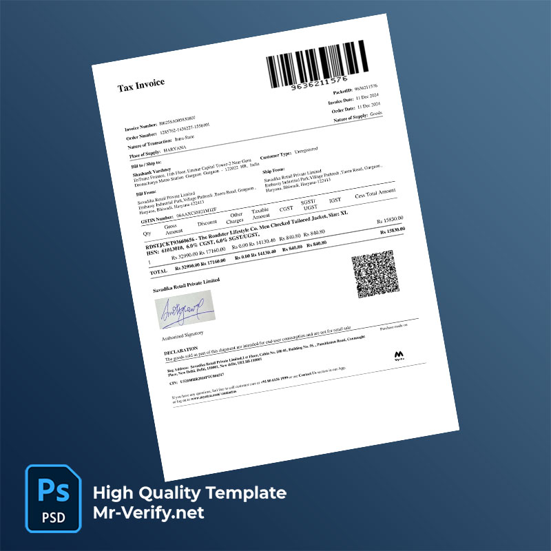 India Savadika Retail Private Limited Editable Tax Invoice Template in Word and PDF formats