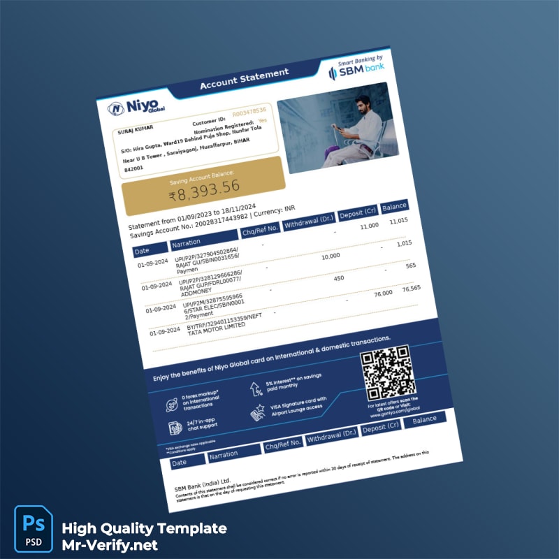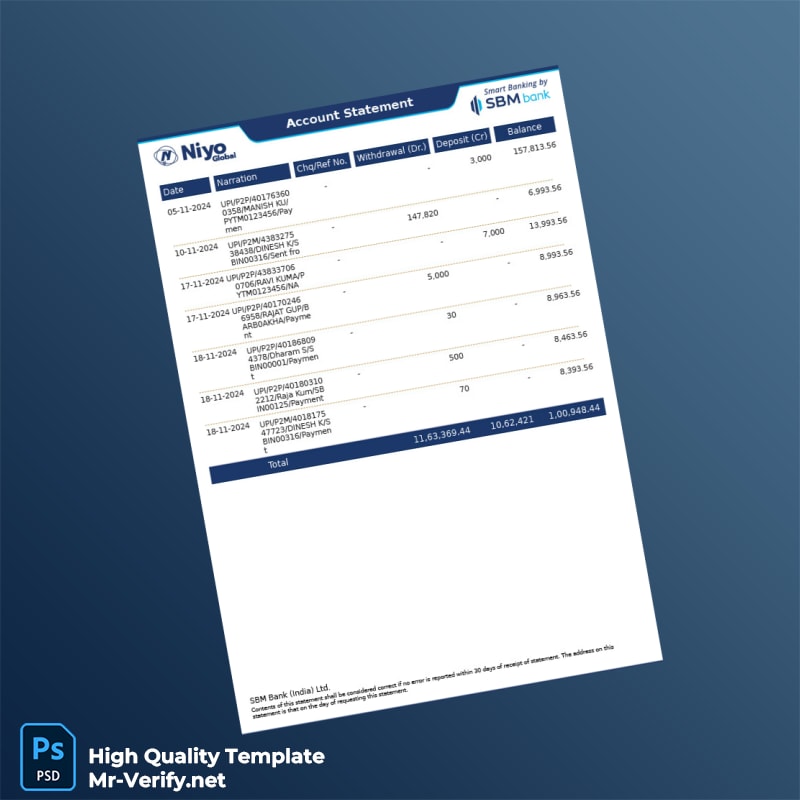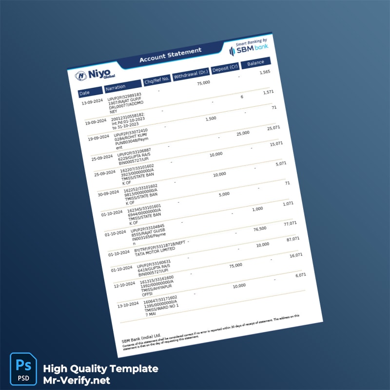 India SBM Bank Account Statement Template in Word and PDF Formats