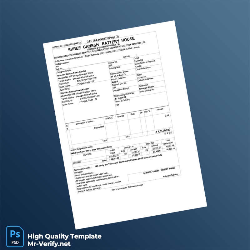 Why Choose the India Shree Ganesh Battery House GST Tax Invoice Template?