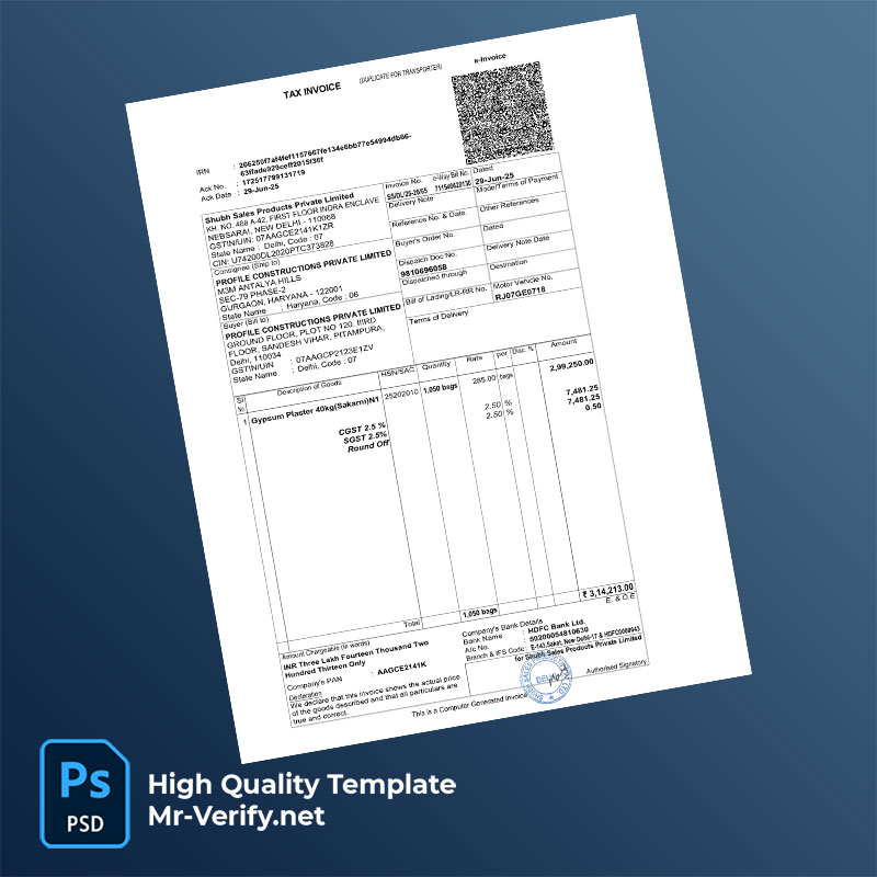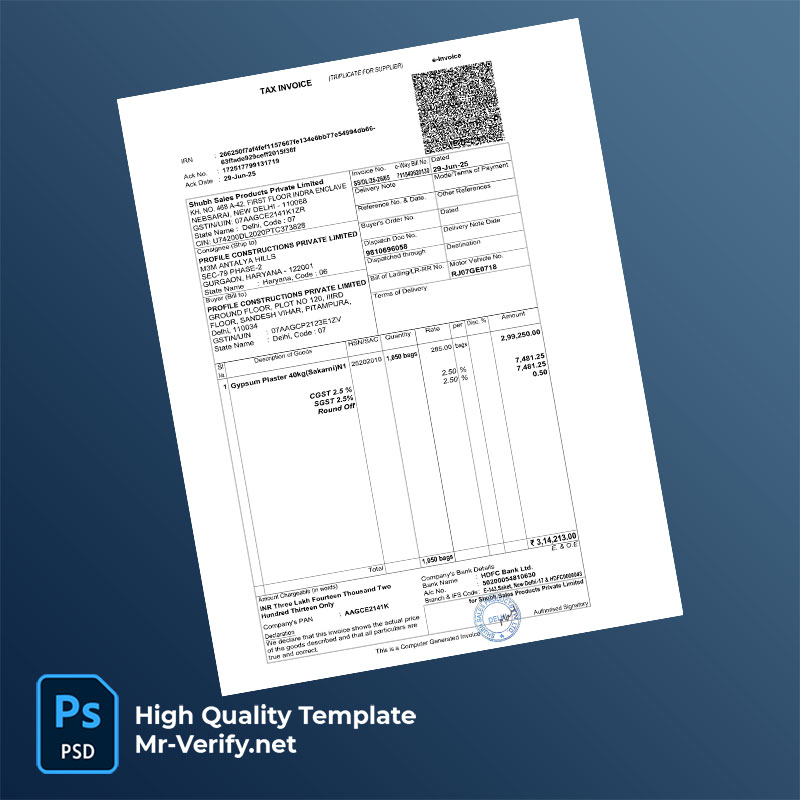 India Shubh Sales Products Private Limited Editable Tax Bill Template in Word and PDF formats