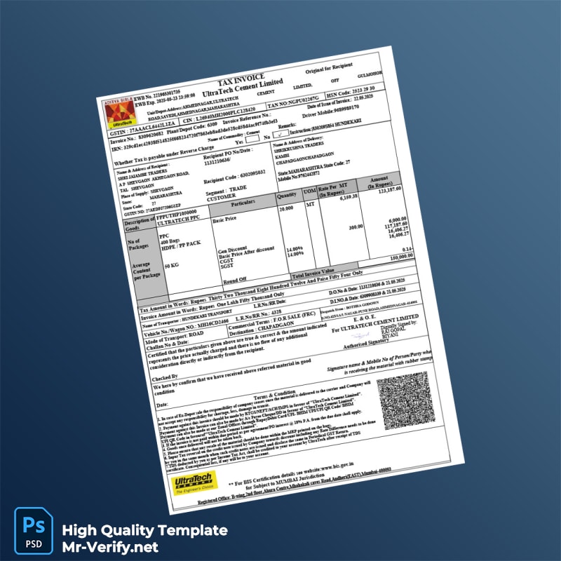 The India UltraTech Cement Limited Tax Invoice Template offers a streamlined, professional solution for generating fully editable invoices in both Word and PDF formats. Designed specifically for businesses requiring accurate, customizable, and legally compliant billing documents, this template ensures your invoicing process is swift and error-free.