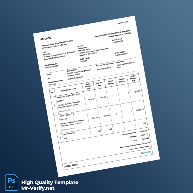 Be the first to review “Indonesia DUROSID Invoice Template in Word and PDF formats 2 page”