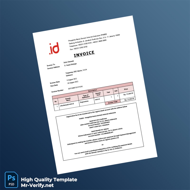 Indonesia PANDI Invoice Template in Word and PDF formats