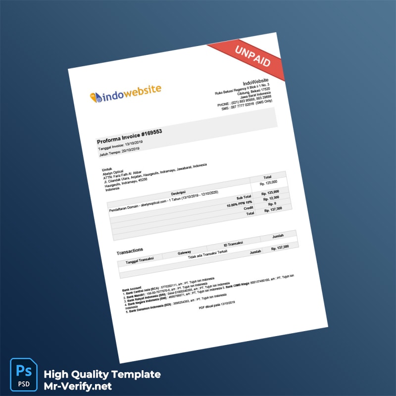 Indonesia PT Tujuh Ion Indonesia Proforma Invoice Template: Professional Editable Invoice Solution