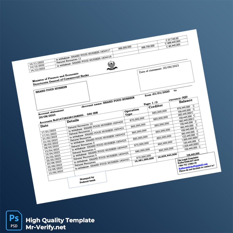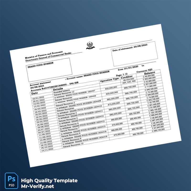 Our Iraq Bank Statement Template includes valuable features tailored for professionals:
