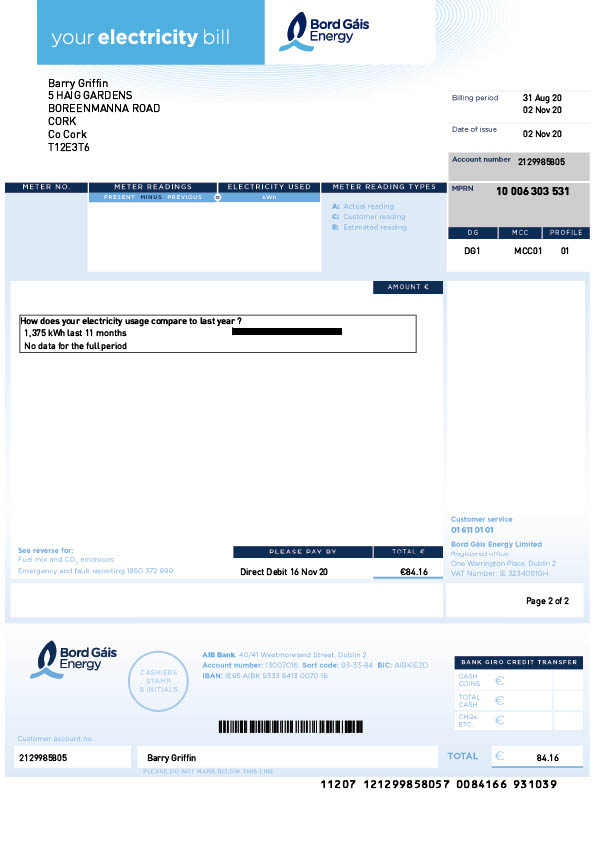 Transform Your Identification Process with Our Ireland Bord Gáis Energy Editable Electricity Bill Template