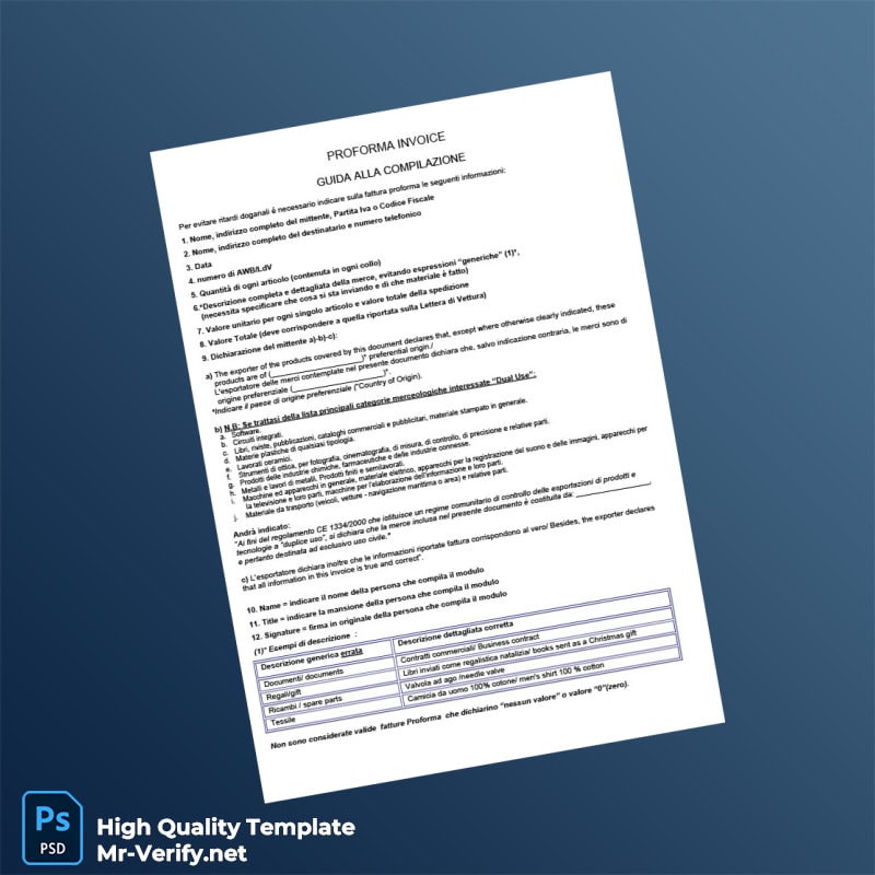 If you’ve ever lost crucial billing documents or needed a quick replacement to keep your business running smoothly, the Italy Invoice Template is crafted for you. Imagine a freelance designer on a tight deadline who needed an editable blank invoice template immediately after their original was misplaced. With instant access, they swiftly customized the invoice details and sent a professional invoice without missing a beat. This ease of use and reliability make it invaluable for global professionals seeking efficiency.