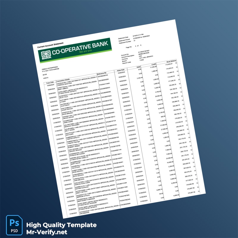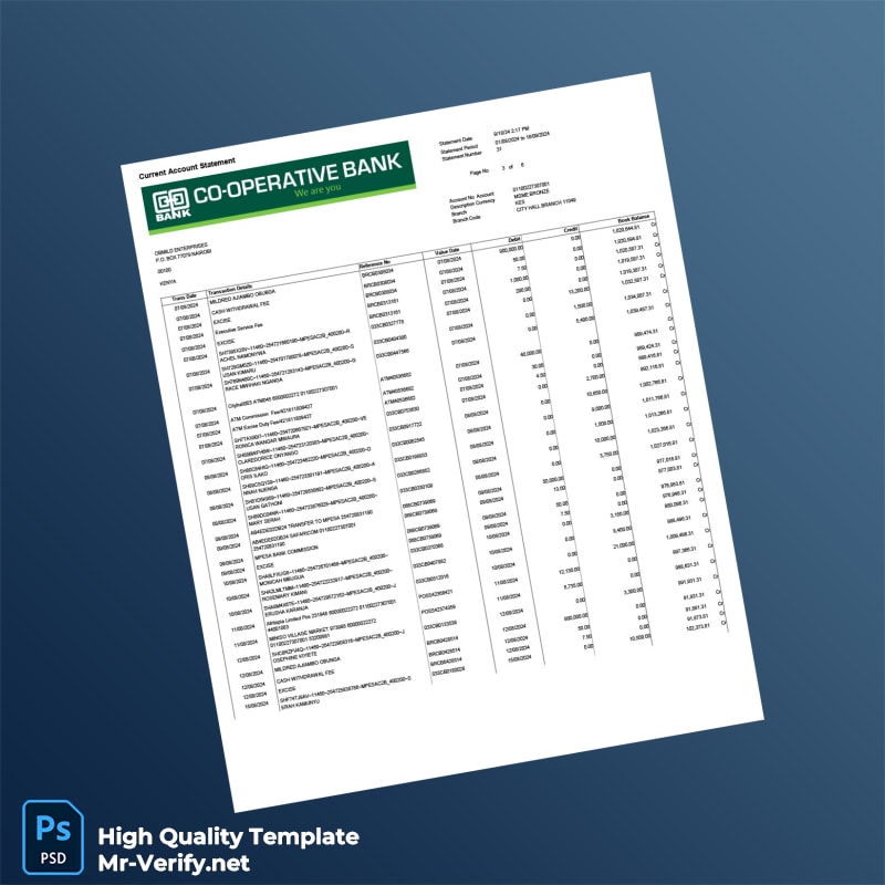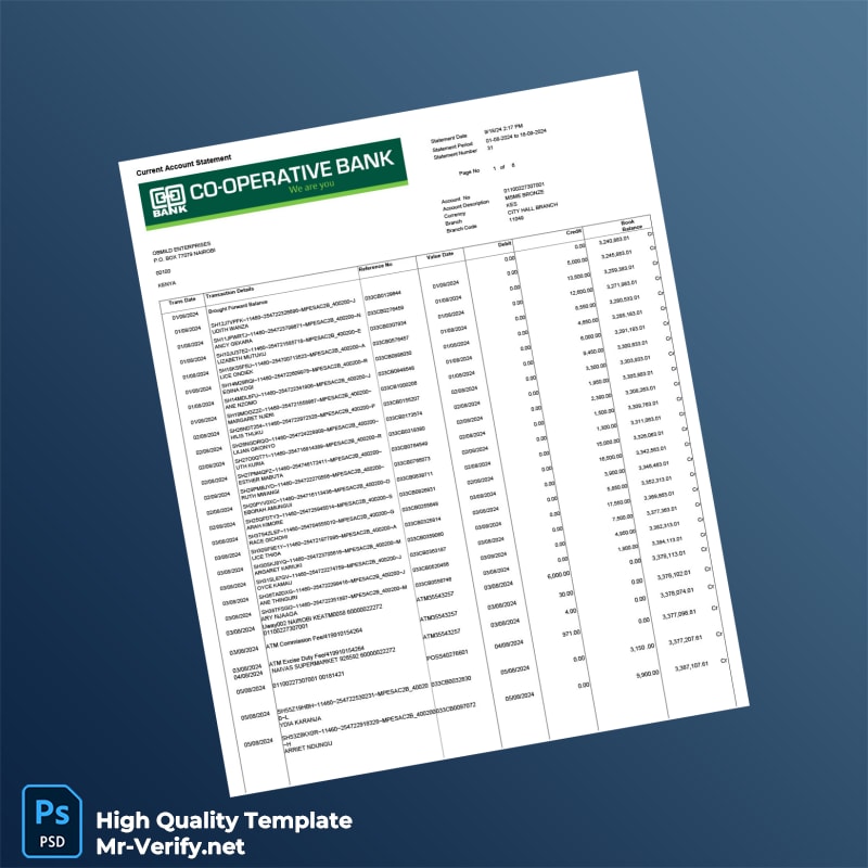 Kenya Cooperative Bank Account Statement Template in Word and PDF Formats