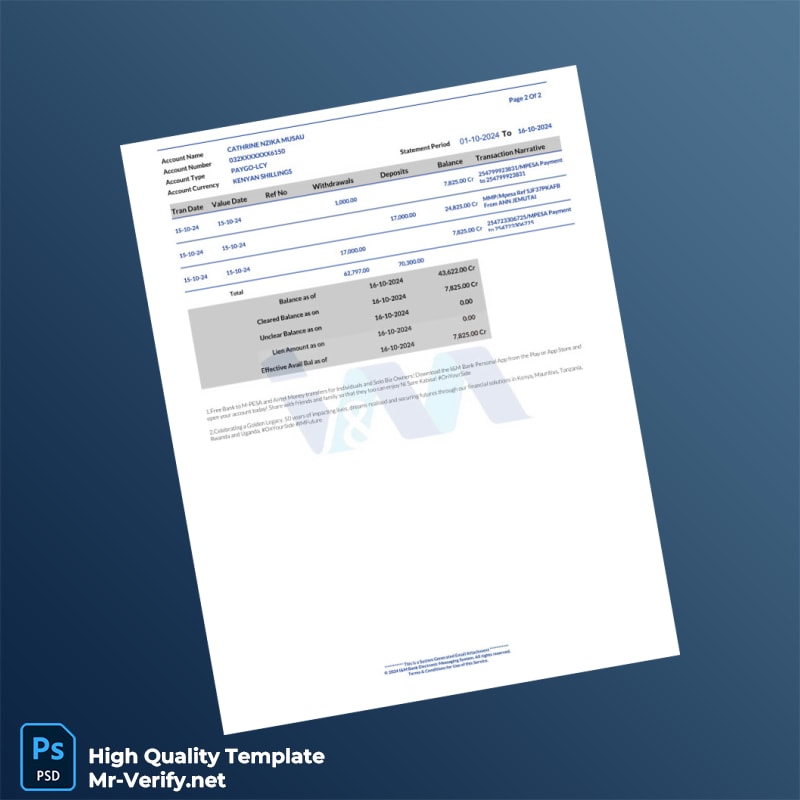 The Kenya IM Bank Statement Template is a versatile and essential tool for professionals in need of editable bank statements in Word and PDF formats. This template is specifically designed to provide a quick and easy solution for managing and presenting financial records.