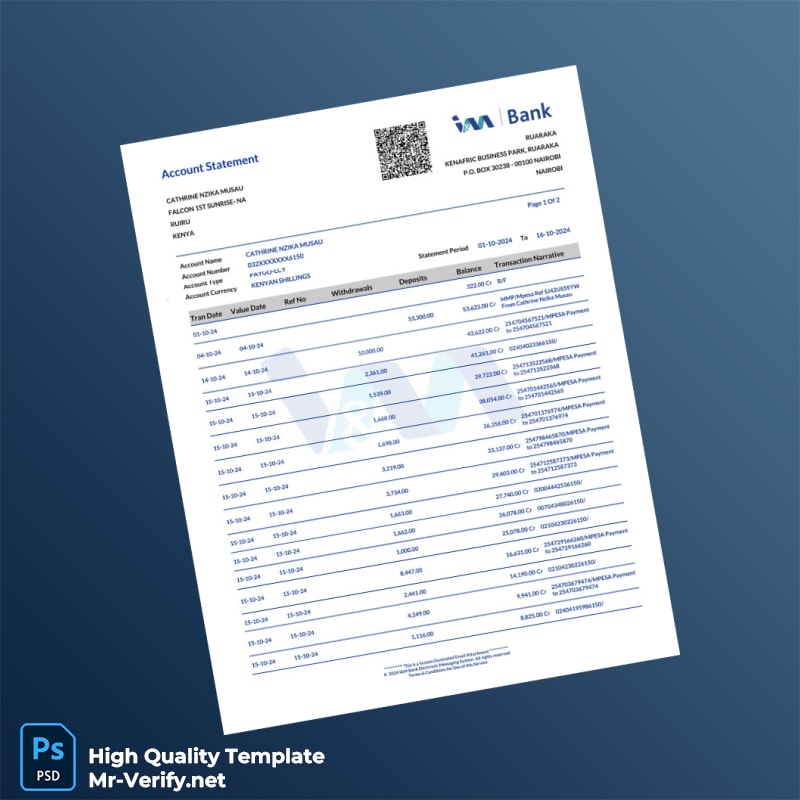 Don’t let document-related stress hold you back. With the Kenya IM Bank Statement Template, you gain not only a product but a reliable solution to ensure your financial documentation meets all requirements efficiently and effectively. Purchase now and take the first step towards hassle-free financial management!