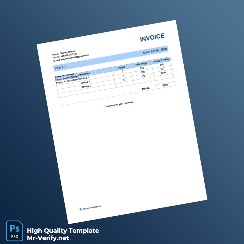 Our Kenya Invoice Template provides an intuitive experience with its editing invoice template features that allow you to update every detail — from client information and payment terms to itemized services and totals — all within familiar Word and PDF formats. The editable invoice template word and PDF formats ensure versatile use across various devices and printing setups.