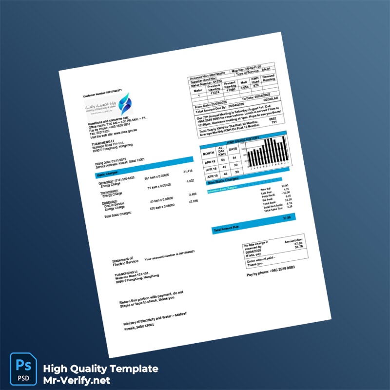 Are you in a rush to provide a valid proof of address but struggling to find the right template? Introducing our Kuwait Ministry of Electricity and Water Editable Utility Bill Template, available in both Word and PDF formats, designed to meet your urgent documentation needs.
