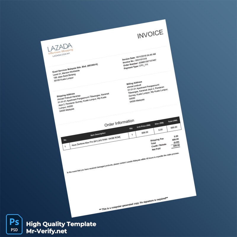 Malaysia Ecart Services Malaysia Sdn Bhd Invoice Template in Word and PDF Formats