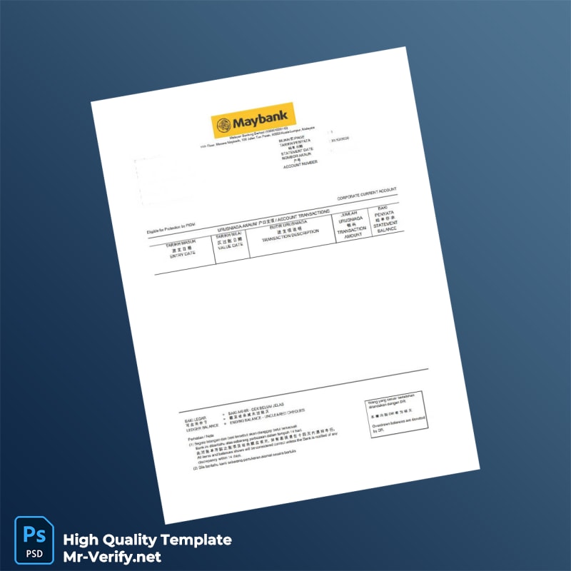 Malaysia Malayan Banking Berhad Bank Statement Template – Customizable and Professional