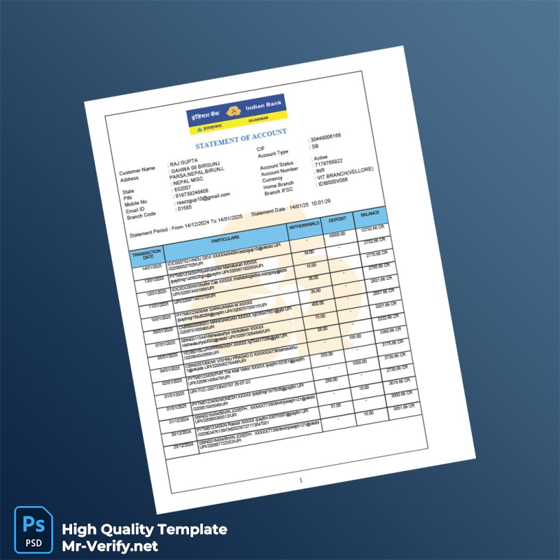 Whether you’ve lost your original statement, it got damaged, or you need a replacement in a hurry, the Nepal Indian Bank Statement Template can effectively resolve these situations. Professionals often face time constraints, and having a dependable bank statement template in Word or the option for a 6 months bank statement PDF ensures a quick turnaround.
