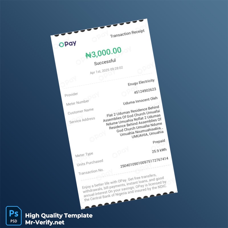 Nigeria Enugu Electricity Editable Utility Bill Template